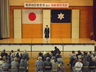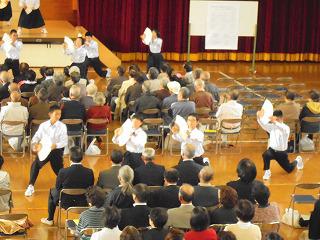 10月19日(水)、板荷小体育館を会場に、高齢者交流会を開催しました。まず、午前9時30分から自治会協議会主催の「敬老会式典行事」がありました。