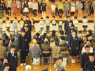 <来場者全員で「赤とんぼ」「ふるさと」の合唱> <中学生の合唱>