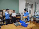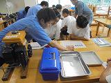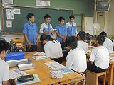 本校では、技術家庭科の技術分野において、県立今市工業高校の「出前授業」を実施しています。これは、専門性の高い工業高校の先生や生徒からの指導を受けて、技能を高めるという教科の目的と、高校生との交流を通して高校の学習内容を理解するという進路学習面からの目的で、昨年度から実施しています。