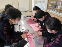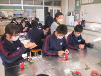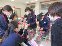2年生が心を込めて卒業生のコサージュを手作りしました。