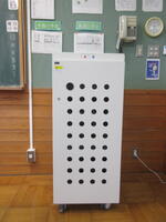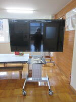 タブレットの充電と保管を行うラックと65インチサイズの移動式モニターが入りました。タブレット本体などの設置は後日になります。モニターはパソコン用ものです。タブレットは生徒1人1台設置されます。