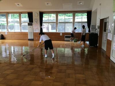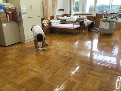 7/16(火)に、教室、食堂、保健室、体育館、職員室のワックスをかけました。おかげでとてもきれいになりました。生徒の皆さんお疲れ様でした。