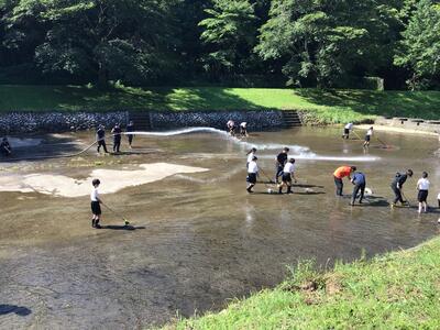 今年も板荷中生徒による、せせらぎプールの清掃を行いました。