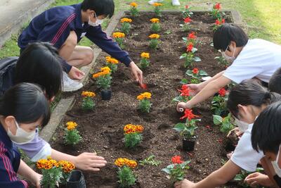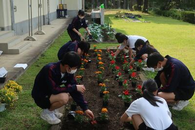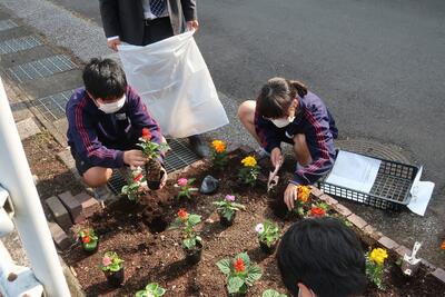 特別にジャージ登校としたので、登校した順に手際よく植え替えていました。さすが板中生!