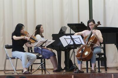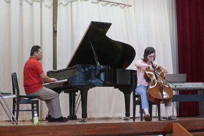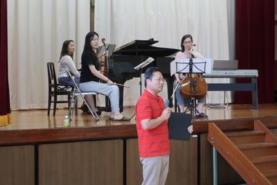 プログラムの最後に、A先生のトランペットと校長のオーボエも参加させていただいて、バッハのカンタータ147番「主よ人の望みの喜びよ」を演奏しました。直前に1度合わせただけでしたが、やはり音楽に国境はないことをあらためて感じることができました。皆さんも感じてくれたかな?