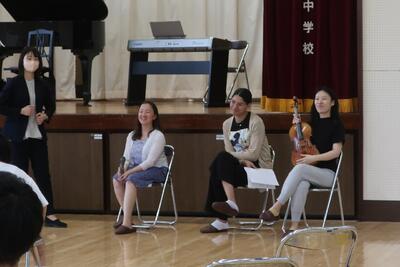6時間目は、アメリカのノースダコタ大学から来日した「レッドリバートリオ」の特別演奏会を鑑賞しました。