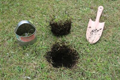 その後、自然消滅してしまったようですが、何とか復活させようと、3回ほど芝を刈り込んでみました。