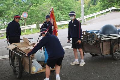 板荷中名物 リヤカー部隊