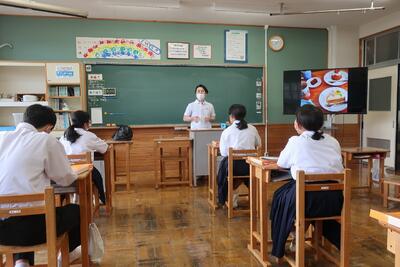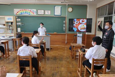 「patisserie HANA (パティスリー ハナ)」の I様にご来校いただいて、将来の職業選択についてご自分の体験を通して、アドバイスをいただきました。ご自身が中学生の頃からの、実体験の基づいたお話をお聞きして、生徒たちも大いに刺激を受けていたようです。