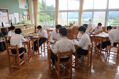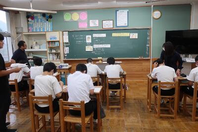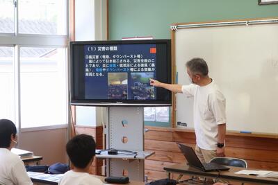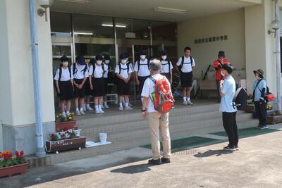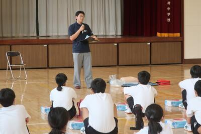 地元で行う宿泊学習なので、最初の活動は、中学校で防災学習からスタートです。