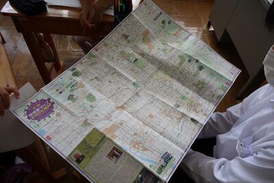 防災の大切さについて学習した後、フィールドワークを行って、「ハザードマップ」を作ります。