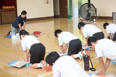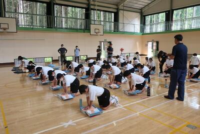 5・6時間目に、全校生徒を対象にして応急手当講習会を実施しました。
