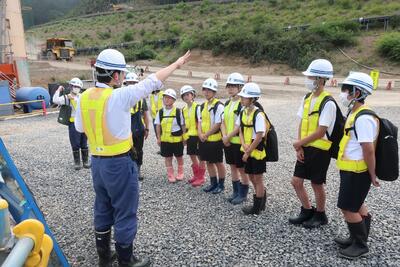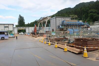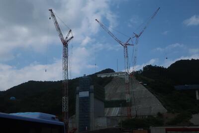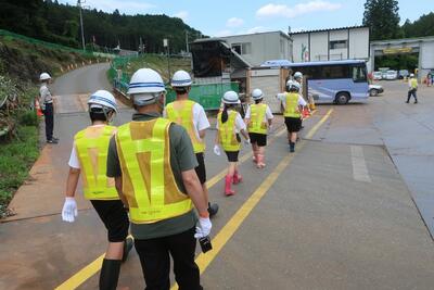 本体を見学した後、バスで移動して、板荷の9区で工事が進められている取水口を見学しました。