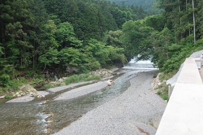 工事が完了するとダムの底に沈んでしまう場所まで降りて説明していただきました。