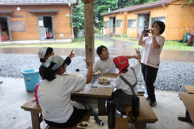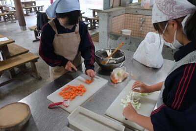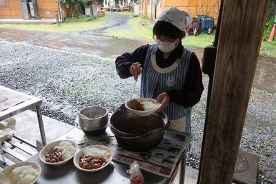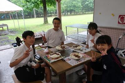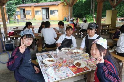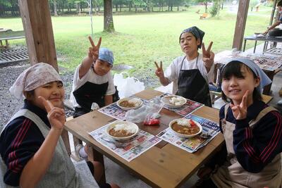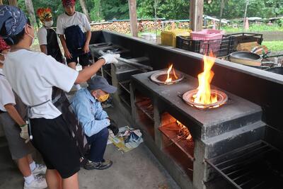 火起こし体験の後、カレー作りに挑戦です。