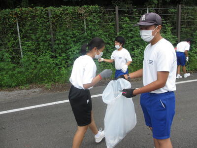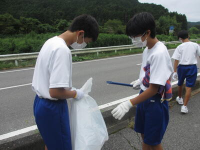 8月25日にやまなみの地域探求コースが中心となって、加園方面と久我方面に分かれクリーン活動を行いました。全校生徒の半分以上が参加し、地域に落ちていたゴミを拾い環境の美化に努めました。