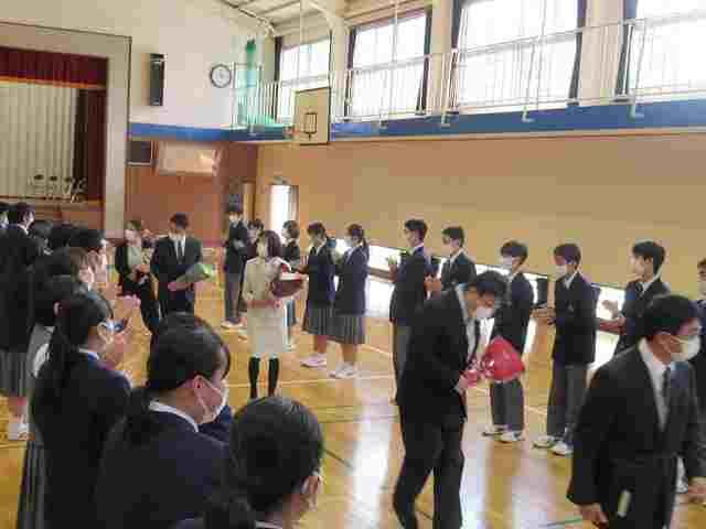 厳かな中にも温かい感謝の思いにあふれる式となりました。たくましく成長した卒業生の姿に1,2年生も今後の思いを新たにしていました。16名の卒業生のみなさん、加蘇中学校で身につけた「しなやかな対応力」を大切に、これからますますの活躍を期待しています。ご卒業おめでとうございます。
