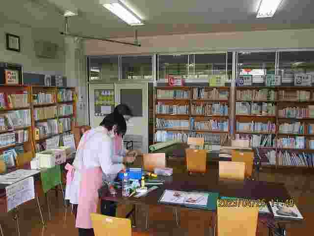 図書室に新しく入った本の受け入れ作業をしてくださいました。