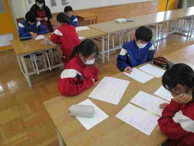 先日の学級活動に続いて、加蘇中学校教員が加園小学校へ出向き、6年生対象に「国語」「算数(数学)」の授業を行ってきました。国語の授業では「短歌を作ろう」、算数の授業では「ゲームから規則性を見つけよう」という学習内容で、一生懸命と課題に向き合う6年生の姿が印象的でした。みなさんの中学校への入学を楽しみにしています。