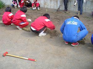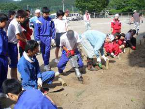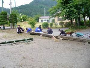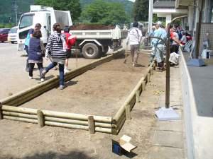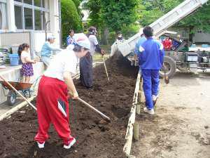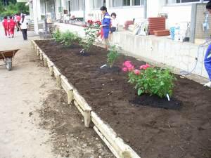 例年行っている機械による草刈りと学校回りの除草の他に、今回は花壇作りを行いました。