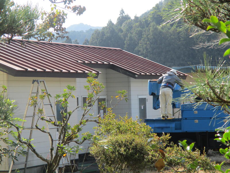 鹿沼市の作業班の皆さんに外倉庫の屋根を塗装していただきました。