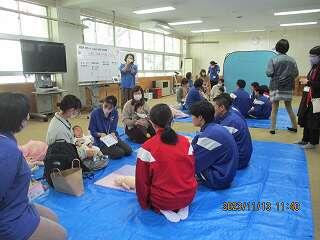 11月13日に3年家庭科の授業の一環で、赤ちゃん交流体験学習を行いました。