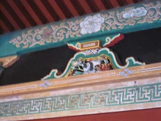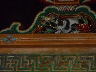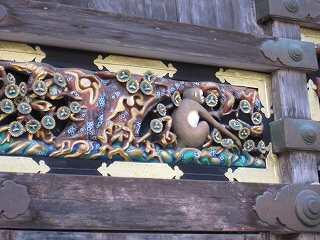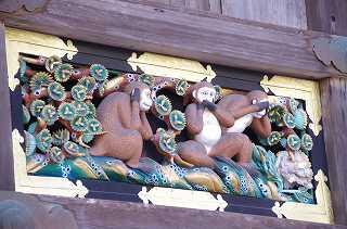 多くの彫刻がある中で、東照大権現と書かれた青い額が、際だって見えたのが不思議でした。たくさんの獅子や龍の彫刻、そして、子どもたちがじゃんけんをしていたり、楽器の演奏や本を読んでいたりする彫刻がありました。安心して暮らせる世の中を表していると解釈できました。