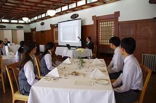次に日光金谷ホテルで、テーブルマナー教室を行いました。
