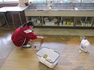 ワックスがけや特別教室の清掃、校庭の花壇の塗装や草むしりなど行いました。