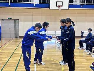 体育館でのバレーボールや校庭でのサッカー、以心伝心ゲームなどを行って、最後に1・2年生からの感謝の言葉と記念品が贈呈されました。1・2年生から慕われ、心から頼られる三年生の存在の大きさを実感しました。3年生のために、一致団結してがんばった1・2年生も立派でした。