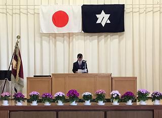 皆さんにお渡しした卒業証書は、中学校の課程を修了し、本校の教育目標である、思いやりをもち、自ら学び、たくましい生徒であることを認め、9年間の義務教育を全て修了したことの証です。