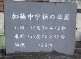 石碑には、加蘇中学校の北緯と東経、海抜などが刻まれています。