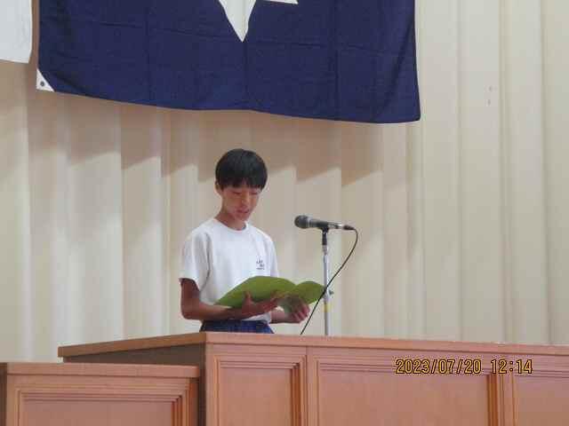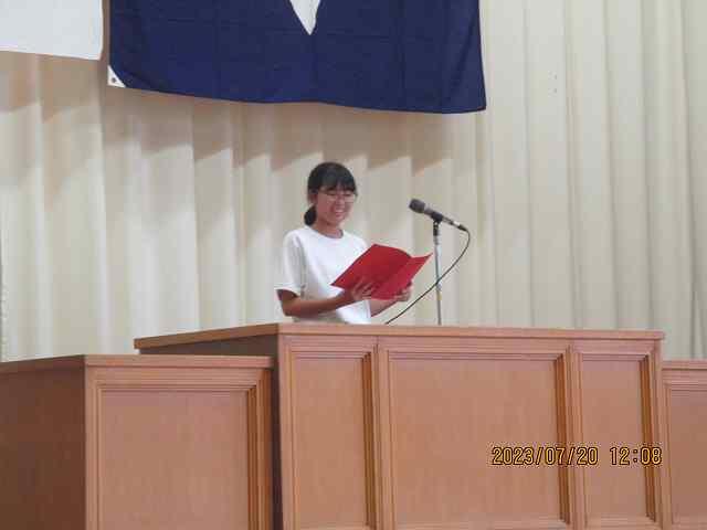 加蘇中生の1学期の頑張りをたたえるとともに、夏休みの過ごし方の留意点についてお話がありました。
