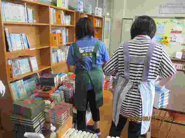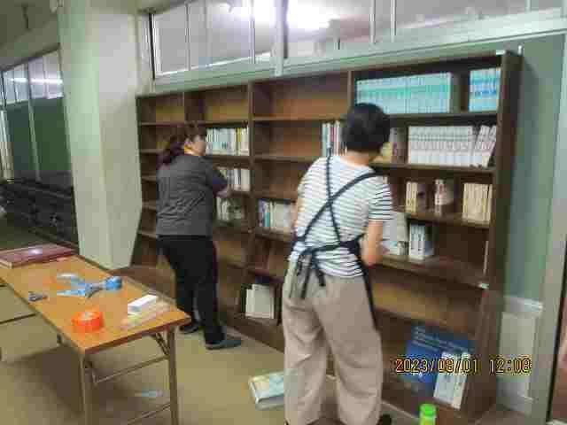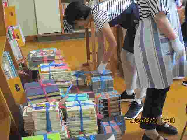 8月1日(火)に図書支援員の皆様に図書室の蔵書を整理していただきました。