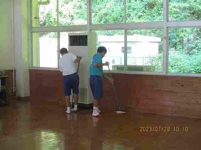 7月18日と28日に美化委員や部活動で来校していた生徒の皆さんで、ワックスがけを行いました。