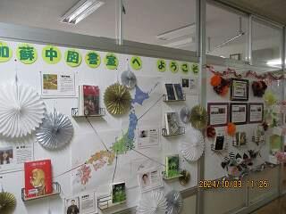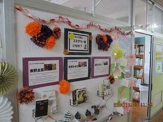 図書支援員さんや学校支援ボランティアKLVの皆さんが図書委員と連携して、「読書の秋」を演出しています。