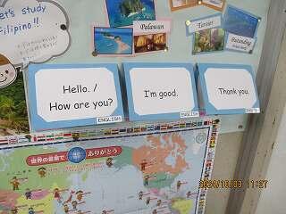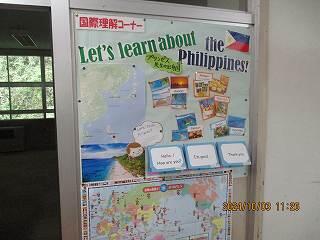 国際理解コーナーでは、コミュニケーション意欲や学習意欲が向上するような掲示物を英語担当教諭と協力して作成しています。