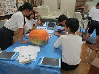 みんなで協力して、ハロウィンに向けて「おばけカボチャ」を作ることにしました。