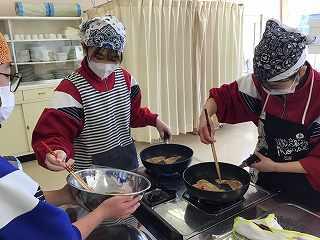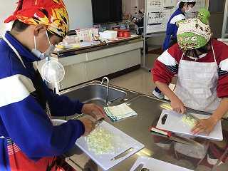 1月15日に2年生で調理実習を行いました。さて何を作っているのでしょうか?