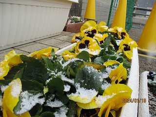 南側のプランターにも少しずつ雪が積もっています。