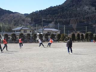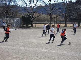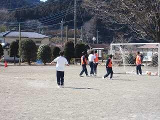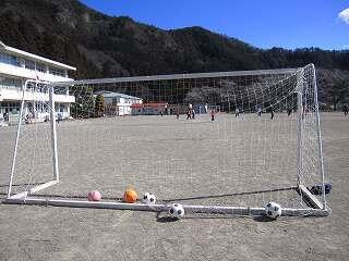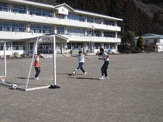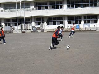 校庭の全面を使って、運動量、安全面を確保してサッカーが行われています。