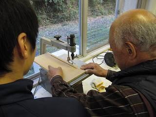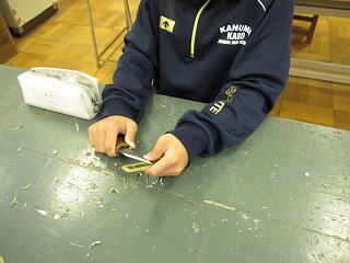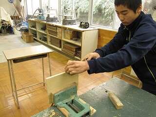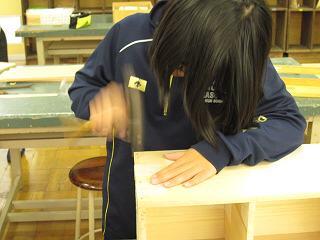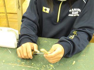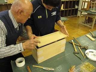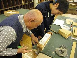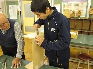 1年技術の木材加工は、地元の大工さんにボランティアでご指導をいただいています。