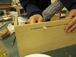 仕切り板にほぞを打ち付けて溝にはロウを塗って動かしやすくしました。