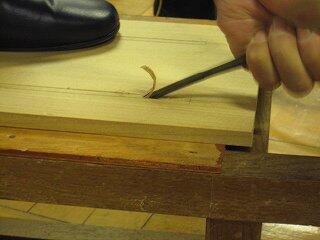 仕切りの板が動くようにしたい計画を実現するために、底板にのみで溝を掘っていきます。