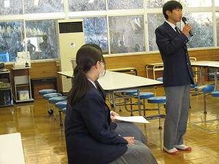 クラス全員で思い出をつくることができるのも、あと少しとなってしまいました。卒業式に向けて、みんなで協力してよい思い出にしていきたいです。地域の方、友達など日々支えてもらっていることに感謝をしながら、最後の中学校生活を送っていきたいです。