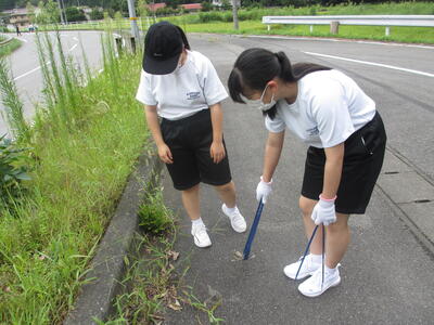 8月25日にやまなみの地域探求コースが中心となって、加園方面と久我方面に分かれクリーン活動を行いました。全校生徒の半分以上が参加し、地域に落ちていたゴミを拾い環境の美化に努めました。