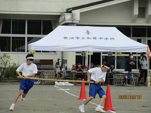 秋晴れの中、9月10日(土)に加蘇中学校の運動会が開催されました。今年度もコロナ感染症対策のため制限のある運動会になりました。生徒達で「何ができるのか?」を考えながら運動会を作り上げました。当日は、応援合戦、徒競走、障害走、加蘇中ソーラン、団体種目、全校リレーに全力で参加しました。また、今年度は3年ぶりに保護者種目や親子種目を実施し、大いに盛り上がり、運動会が大盛況に終えることができました。
