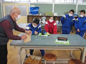 1年生の技術の授業が木工になりました。地域のもの作りマイスターの小林俊明さんをゲストティーチャーにお迎えして、計7回の授業を行います。始めに釘打ちやカンナのかけ方を学びました。本棚や、ラックなど自分で設計した身近に使える物を製作しています。設計のところで苦戦しましたが素晴らしい作品ができるとよいと思います。