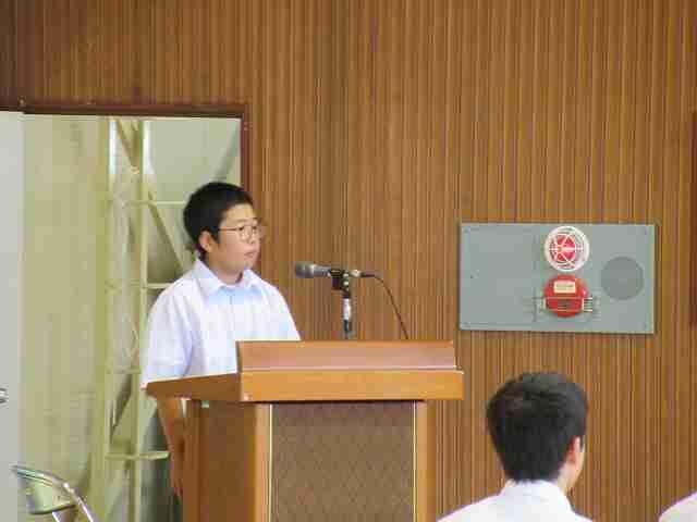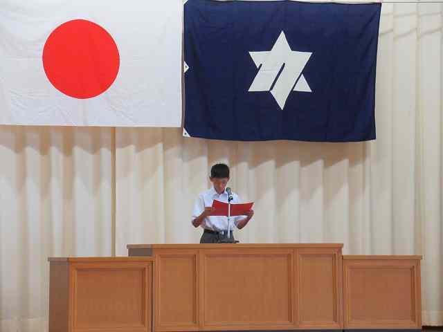 1年生の代表者からは、「定期テストや実力テストに向けて計画的に勉強したい」、「自然生活体験学習に向けて学級で考えたスローガン『一致団結』のもと、協力しながら自分たちで考えて行動していきたい』、「学校祭に向けて、1学期の2・3年生のがんばる姿をみて、2学期は少しでも力になれるように精一杯取り組んでいきたい」などの発表がありました。