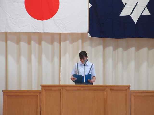 生徒会長からは、「各学年大きな行事があり、全体では学校祭がある。今年度のスローガン『進取果敢、可能性への挑戦』のもと一人一人が主体的に考えながら、全校生徒で協力してがんばっていきましょう」などの話がありました。